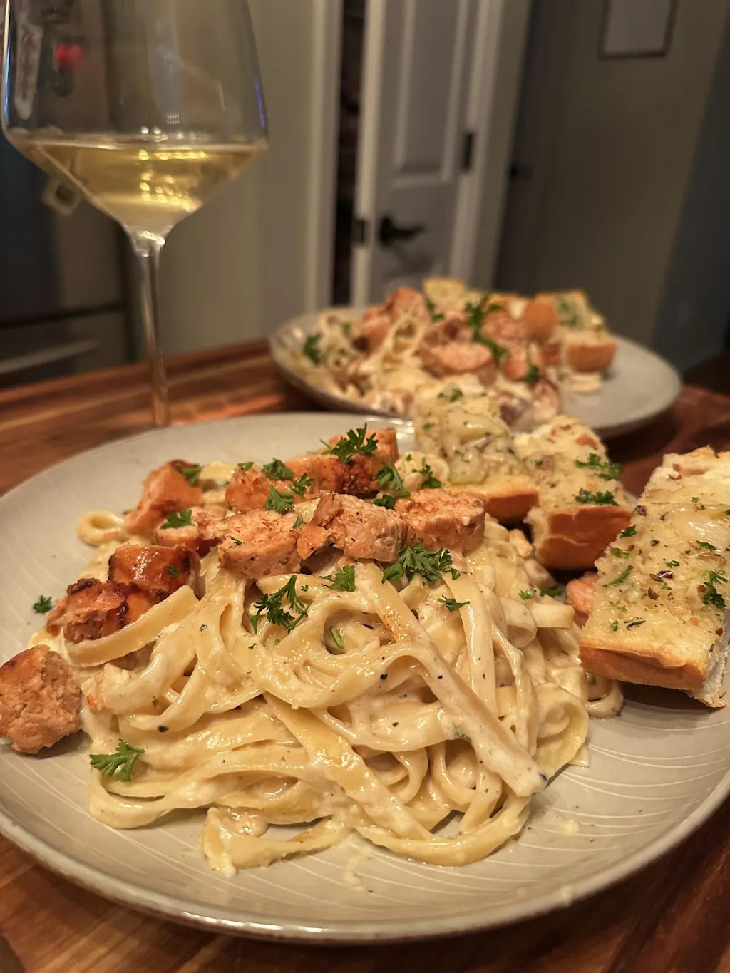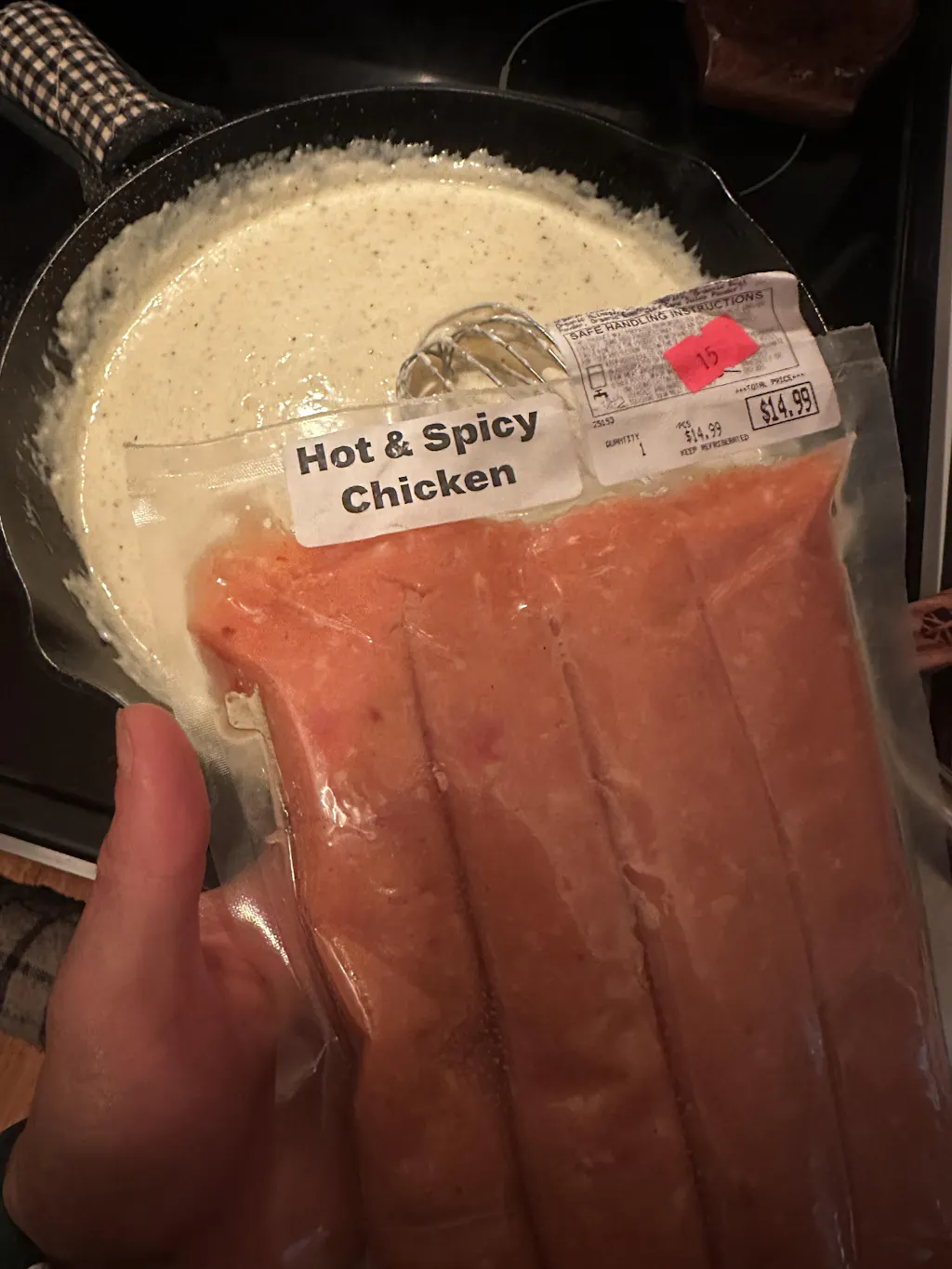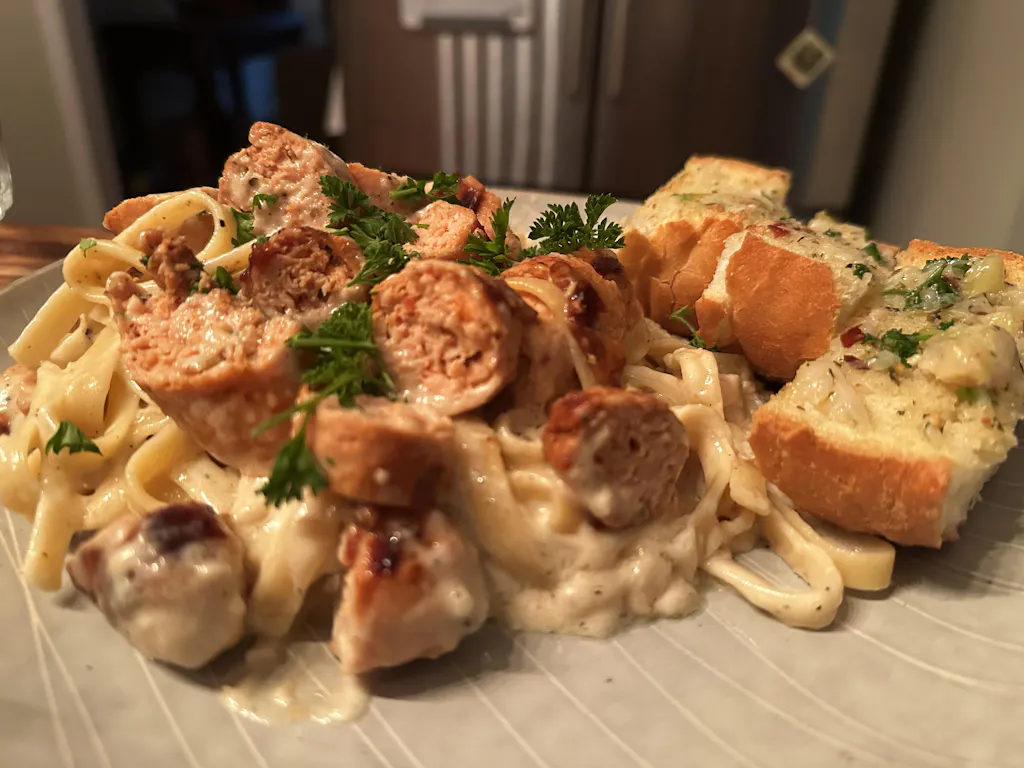We decided to add this to a homemade fettuccine alfredo dish and it was a great idea obviously! The whole dish was super easy to make to begin with. I am always apprehensive about a new (to me) spicy & hot meat being added to a dish without trying it solo first but that wasn't needed! I could still taste and enjoy the flavor without experiencing too much heat.