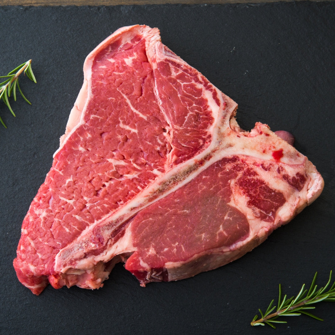 The Porterhouse Steak is the best of both worlds, featuring a rich, flavorful New York Strip on one side and an exceptionally tender Filet Mignon on the other. This king-sized steak delivers incredible taste, perfect marbling, and melt-in-your-mouth texture in every bite.